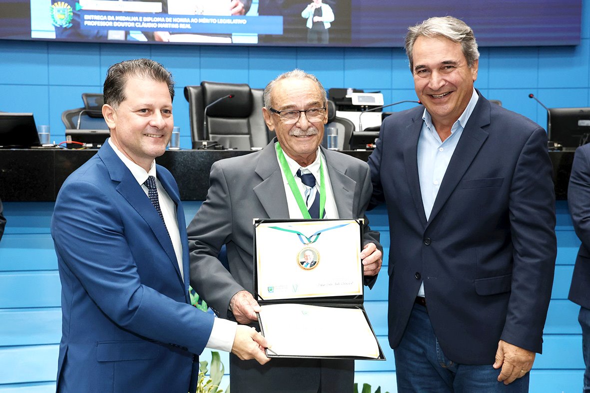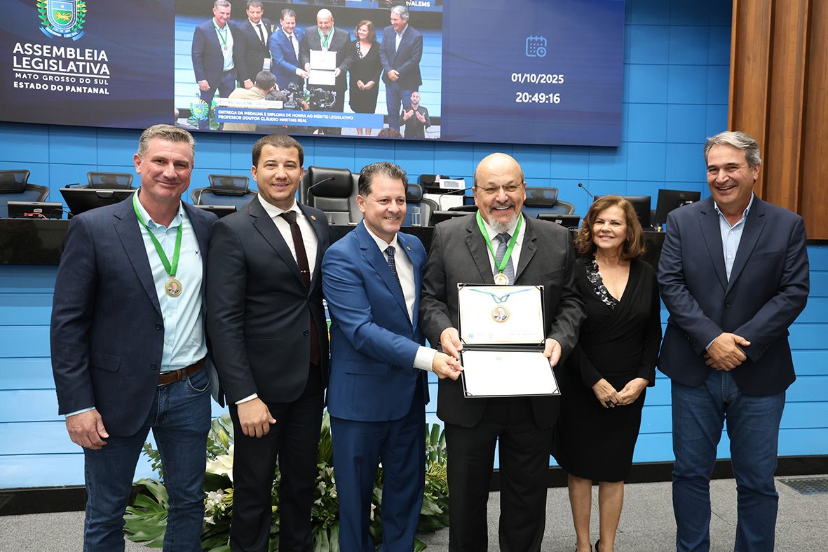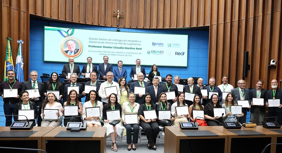 A Assembleia Legislativa de Mato Grosso do Sul homenageou na noite de ontem, 1º de outubro, vários médicos-veterinários que atuam no estado. Eles receberam a Medalha e o Diploma de Honra ao Mérito Legislativo “Professor Doutor Claudio Martins Real”. Entre os agraciados estavam o diretor da Associação Brasileira dos Criadores de Girolando, Marcelo Renck Real, a associada Aurora Trefzer Cinato Real e o técnico de registro e controlador Dagmar Rezende.